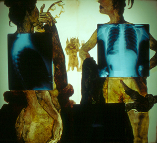 油画颜料,X光片和丝绸在灯箱上